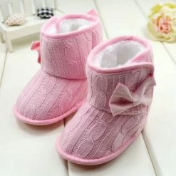 Baby Girl Boy Snow Boots Knit Bowknot Faux Fleece Soft Sole Kids Woolen Yam Knit Fur 3-18 Months