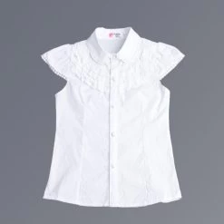 Summer Girls Clothes Lotus Leaf Collar Sleeveless Solid Shirt Casual Girls Shirt Children Blouse