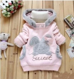 Baby Girls Coat Kids Warm Winter Outerwear Children Hooded Jacket Bunny Sweater Pink&Gray 2-6Y