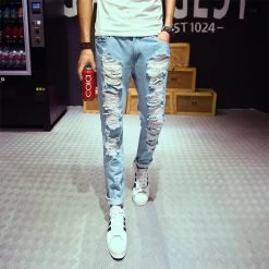 Mens Denim Shorts Slim Regular Casual Knee Length Short Hole Jeans Shorts For Men Summer White Blue