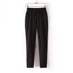 Casual Women Chiffon Pants Elastic Waist Solid Color Office OL Pants Summer Slim Lady Pants AB17