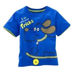 Patterned male short sleeve tee shirt with cartoon characters crested in front to provide the necessary fun for kids.