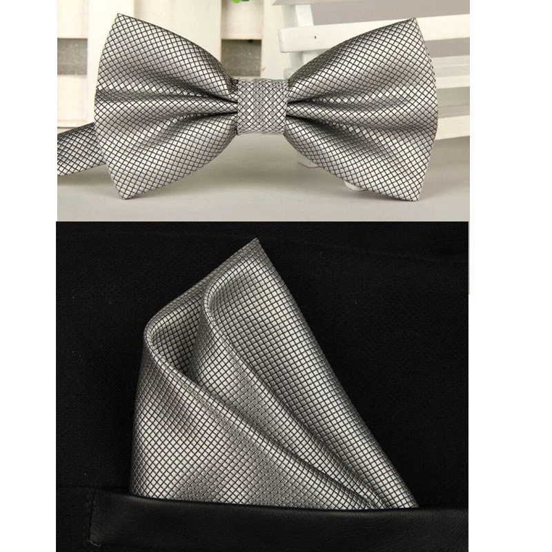 Elevate your style with our 100% silk Solid bowtie men vintage purple black yellow silver wedding bow tie pocket square handkerchief set lote. This exquisite accessory set is designed for the modern gentleman who values both elegance and sophistication. Perfect for weddings, parties, and business events, this bowtie and pocket square combination will ensure you stand out in every crowd.