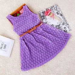 Crafted from a soft blend of cotton and lace, this sleeveless dress features a classic crew neck and a charming A-line silhouette that flatters every little girl. The knee-length design ensures ease of movement, allowing your child to play and dance freely. Available in beautiful colors like white, pink, red, and purple, this dress will brighten any wardrobe.