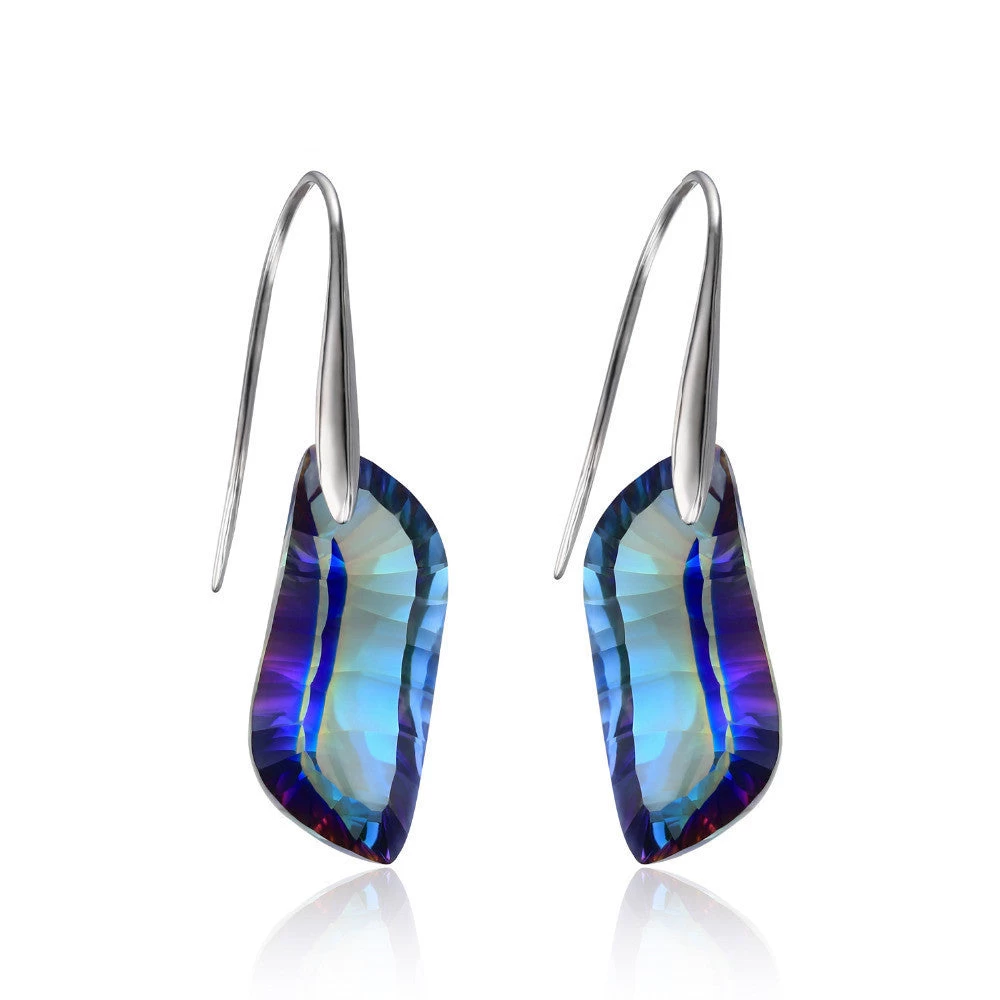Women gorgeous drop earrings with sterlimg metal stamp and fire blue mystic topaz gemstone as the main stone.