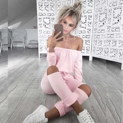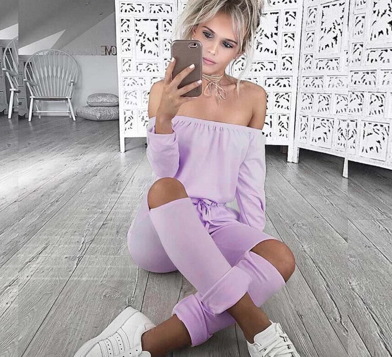 Introducing the 6 Color Rompers Womens Jumpsuit Sexy Off Shoulder Long Sleeve Autumn Elegant Bodycon Bodysuit Bandage Jumpsuits, a stunning addition to your autumn wardrobe that perfectly combines elegance and comfort. This exquisite jumpsuit features a sexy off-shoulder design, allowing you to showcase your shoulders while exuding sophistication. The bodycon fit ensures that your curves are beautifully accentuated, making it a must-have for any fashion-forward woman.