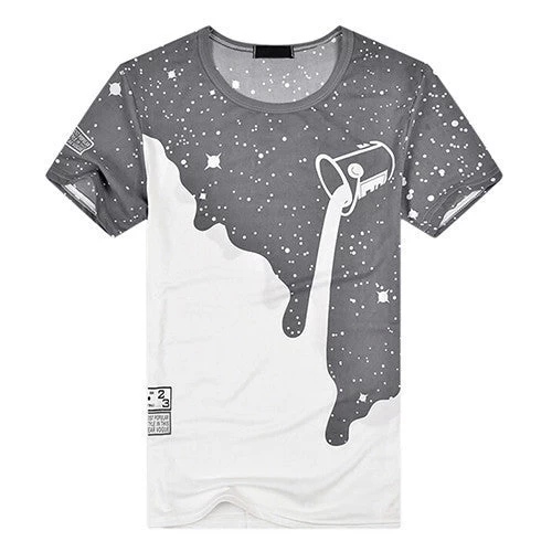 Dress it up with slacks or keep it casual with shorts; this and fashion Men’s Fashion Summer Milk Poured Pattern Printed Short Sleeve Round Neck T-shirt is versatile enough for any occasion. Experience the perfect blend of fashion and function this summer!