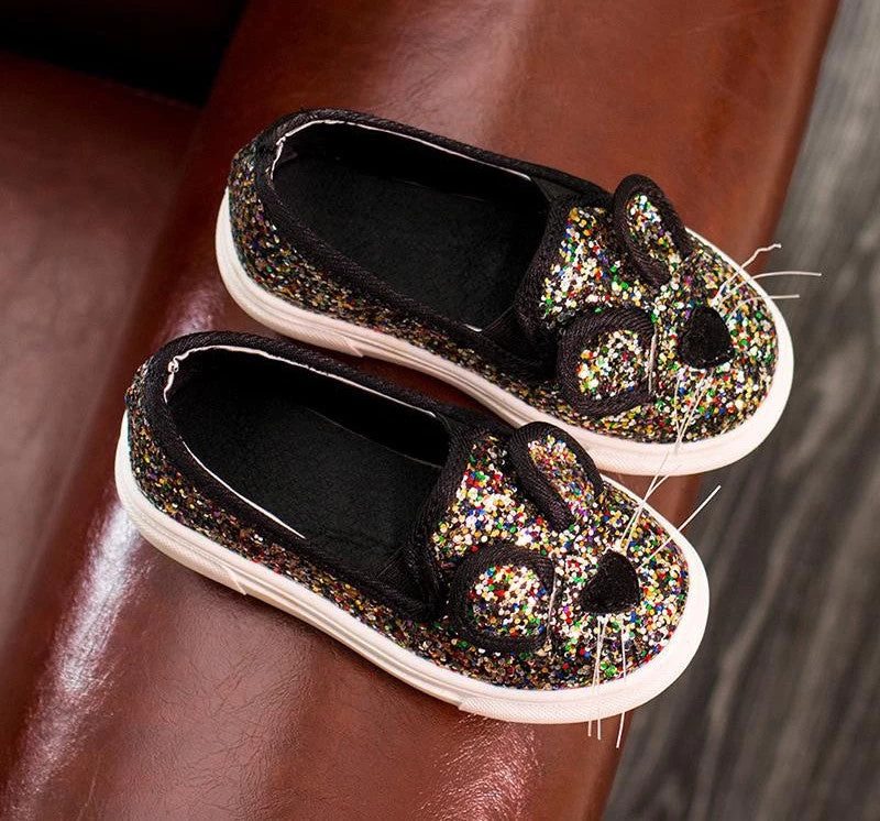 The arrive Fashion Baby Kids Sequins Cartoon Mouse Casual Shoes For Girls Children Footwear size 21-30 Flats bling shoes are the perfect blend of style and comfort for your little fashionista. Featuring an adorable cartoon mouse design adorned with shimmering sequins, these shoes will make any girl feel special and stylish. Made with high-quality materials, they are designed to withstand the energetic play of children while providing exceptional comfort.