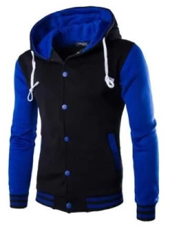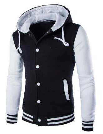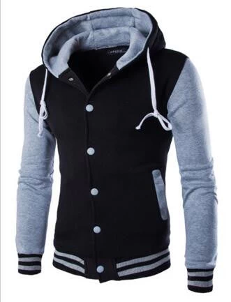 Single breasted base ball hoodie with turn-down that is perfectly fitted to hug the body. It is of regular size.
