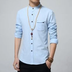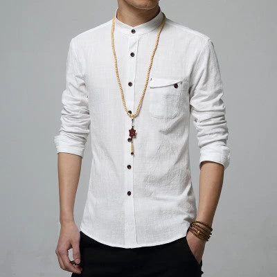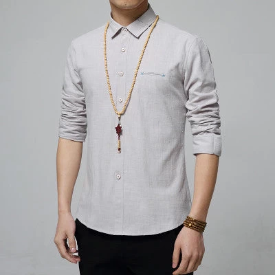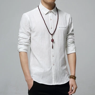 This Autumn Fashion Men Colthes Slim Fit Men Long Sleeve Shirt White Linen Shirts Men Casual Business Shirts Plus size is ideal for a variety of settings, from casual meet-ups to business meetings. Its solid pattern and full sleeve design make it a timeless choice that you can pair with jeans, chinos, or dress pants.