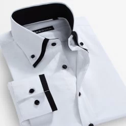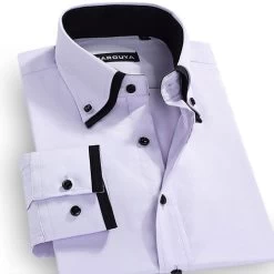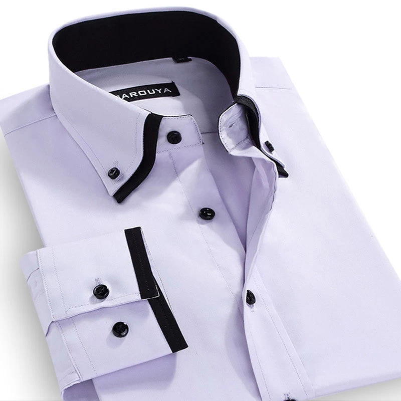 Elevate your wardrobe with our Autumn Men’s Double-collar Long-Sleeved Solid Dress Shirts Cotton Blend Classic-fit Button Down Business Formal Plain Shirt. This meticulously crafted shirt combines comfort and style, making it an essential addition for any business occasion. Designed with a solid double-collar and a classic fit, this shirt is perfect for impressive presentations or casual Fridays at the office.