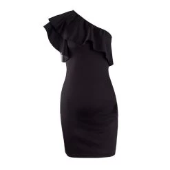 A stunning, sexy ruffles women short dress with one sleeveless shoulder which is suitable for parties during winter.