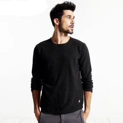 Brand new, computer knitted, long-sleeved, O-neck, solid pattern, standard thickness, cotton, modal and standard wool men casual sweater.