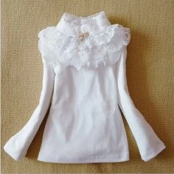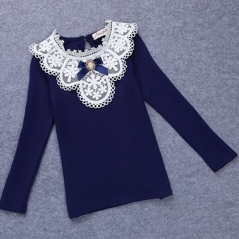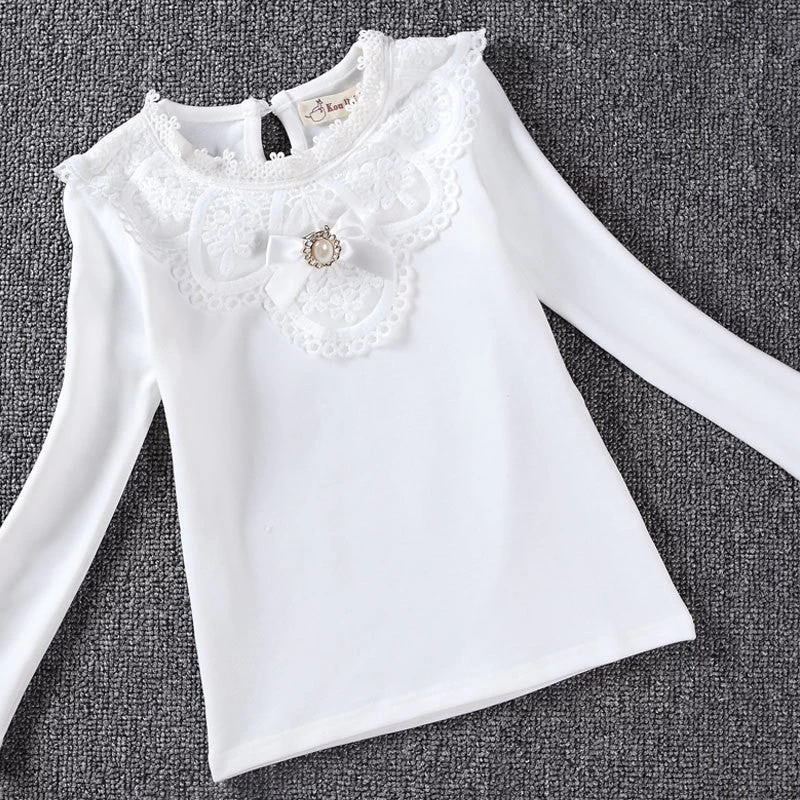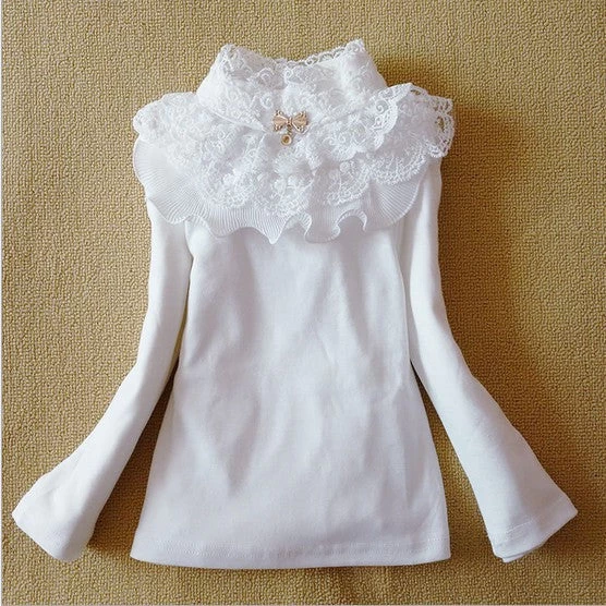 Dress your little girl in this charming blouse, where fashion meets functionality. Order the Autumn Winter Girls Blouses Shirts Fashion Warm Add Wool Long Sleeve White Lace Flower Blouses Girls Cotton Clothes today and let her shine in style!