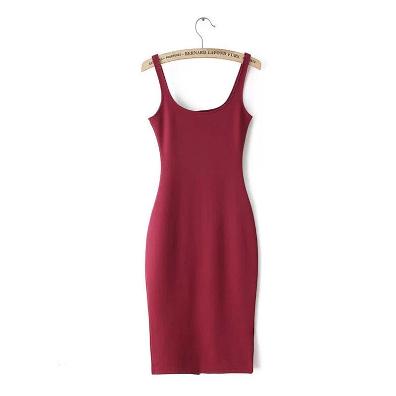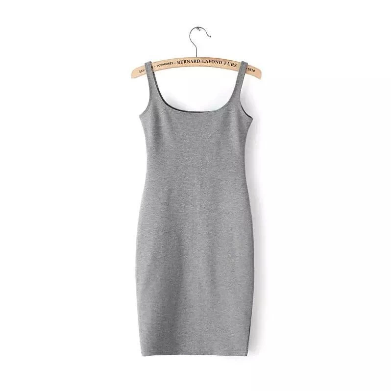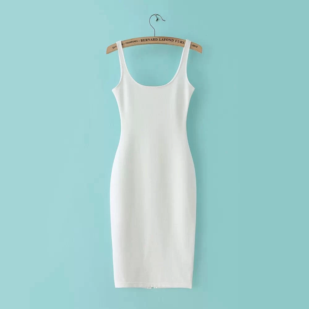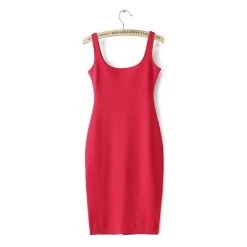 This Autumn Women Dress Sleeveless Slim O-neck Solid Color Pencil Casual Tank Dress features: