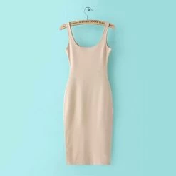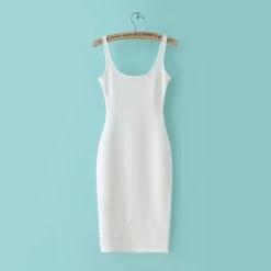 Embrace the autumn season with this chic and stylish dress that meets both comfort and fashion. Perfect for layering or wearing alone, the Autumn Women Dress Sleeveless Slim O-neck Solid Color Pencil Casual Tank Dress is sure to become a staple in your seasonal wardrobe!