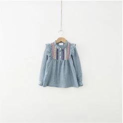 An exquisite long sleeve t-shirt for baby girls. It is a ruffle embroidered tops with O-neck collar.