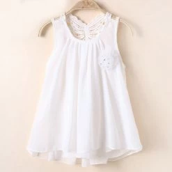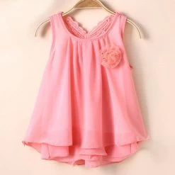 A casual sleeveless sundress for baby girls, it is an O-neck chiffon tutu ballgown with appliques decoration for baby girls of 2-7years.