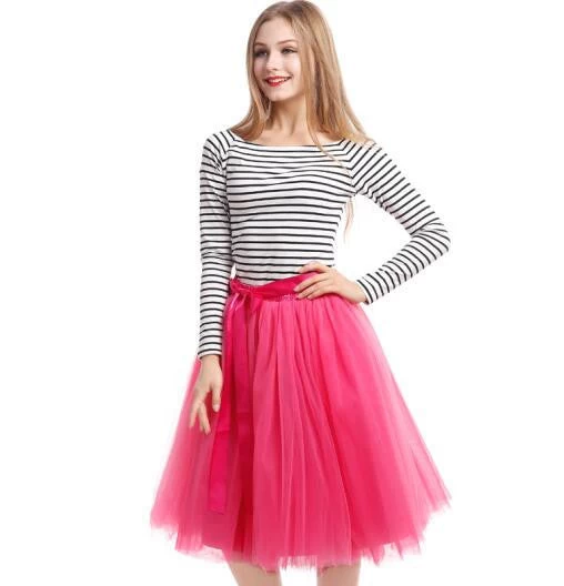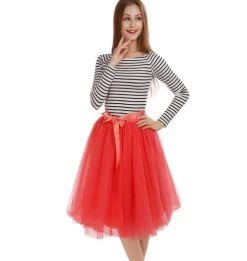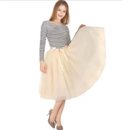 A 7-layer midi tulle skirt of American apparel for women. It is a tutu ballgown of best quality and petticoat elastic belt suitable for Autumn weather.