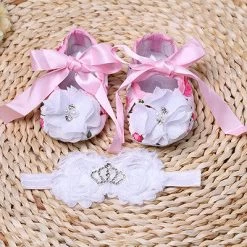 Introducing our exquisite born Booties christening shoes baby girl infant rhinestones first walker baby shoes ballerina girls baptism set, the perfect blend of elegance and functionality for your little one. Crafted from high-quality ivory cotton fabric, these booties are designed for special occasions, ensuring your baby girl stands out during her christening ceremony or any formal event.