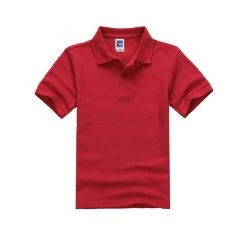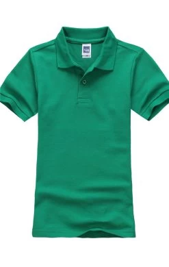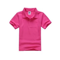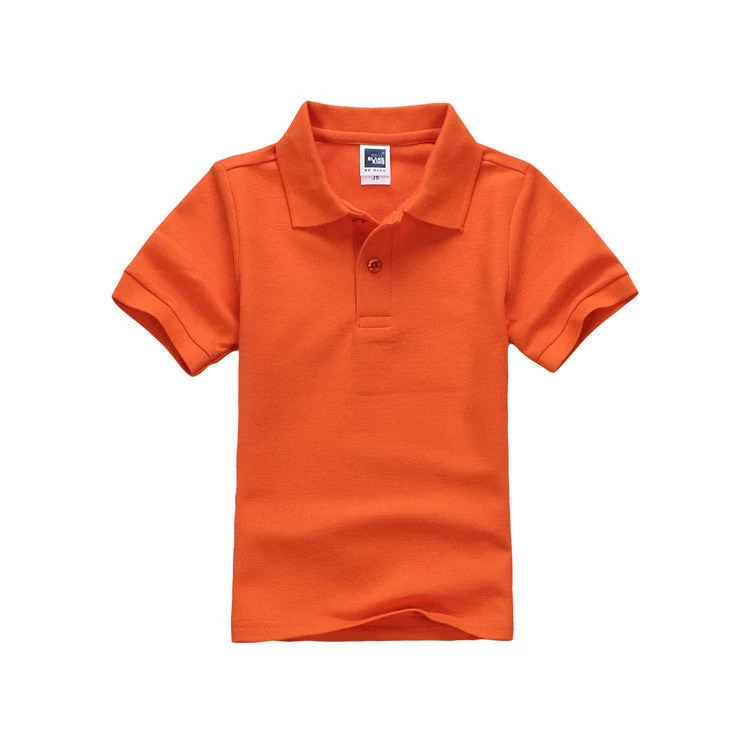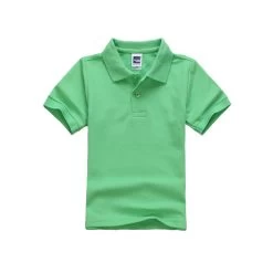 Solid pattern, anti-peeling, short sleeved, turn down collar, cotton polo shirts for both boys and girls to make them look cute.