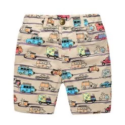 Available in three cheerful colors—yellow, beige, and blue—these shorts are designed to brighten up any outfit. The eye-catching cartoon cars print adds a playful touch, ensuring your child stands out wherever they go.