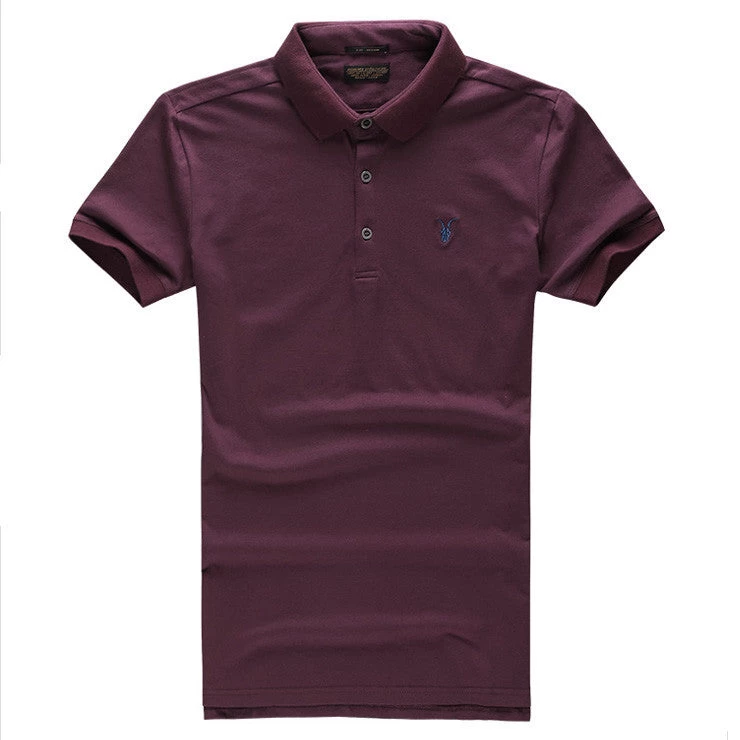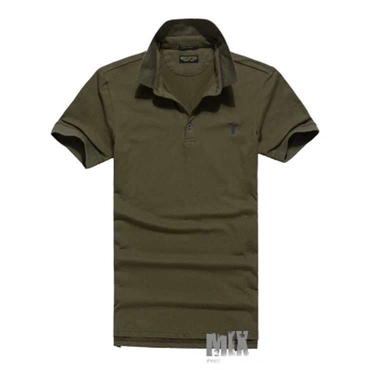 Shape accentuating, England style, anti-pilling, solid color, V-neck turn down collar, slim fit, short sleeved, men casual cotton polo shirts.