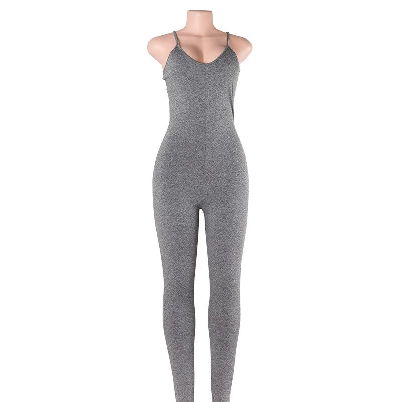 Introducing the Casual Solid Color Romper Playsuit V-Neck Sleeveless Cotton Grey Black Rompers Womens Jumpsuit, a must-have addition to your summer wardrobe. This stylish jumpsuit offers a full-length design that effortlessly combines comfort and elegance, making it ideal for casual outings or a relaxed day at home. Crafted from high-quality cotton, it promises both breathability and softness against your skin.