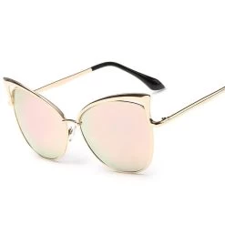Introducing the stunning Cat Eye Female Sunglasses Gold Metal Reflective Summer Pink Glasses Vintage Sexy, the perfect accessory for the fashion-forward woman. These exquisite sunglasses are designed with a striking cat-eye silhouette, offering a blend of vintage charm and modern elegance. The reflective pink lenses not only add a pop of color to your summer wardrobe but also provide UV400 protection, ensuring your eyes stay safe from harmful rays while you enjoy the sun.