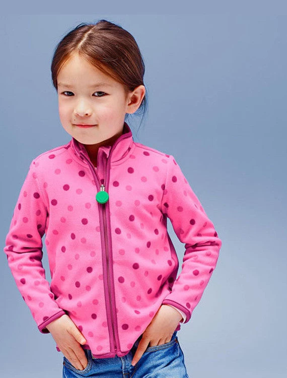 A fleece polka dotted children long sleeve jackets for baby boys and girls with a turtle neck collar for fashion.