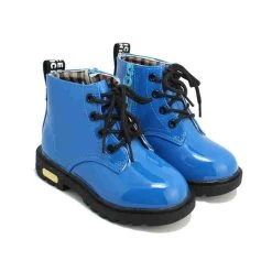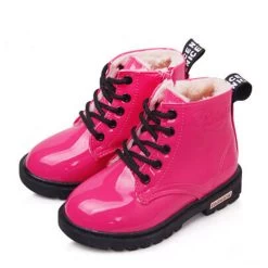 A fashion waterproof ankle PU leather boots for baby boys and girls. It is a cross-tied Martin rubber shoes that is suitable for snow.