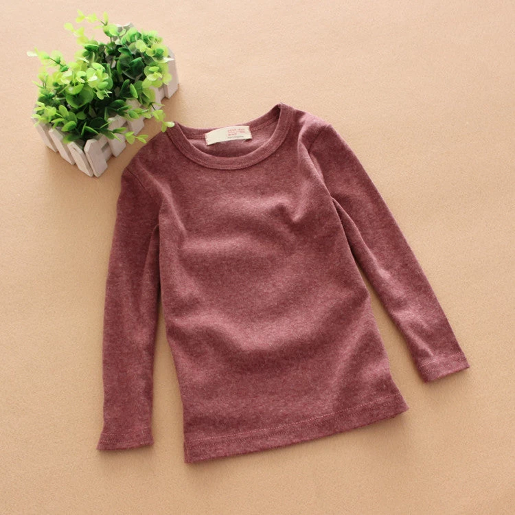 Top quality children long sleeve T-shirt for both baby boys and girls. It is a fashion top with pure color and solid pattern for spring and autumn weather.