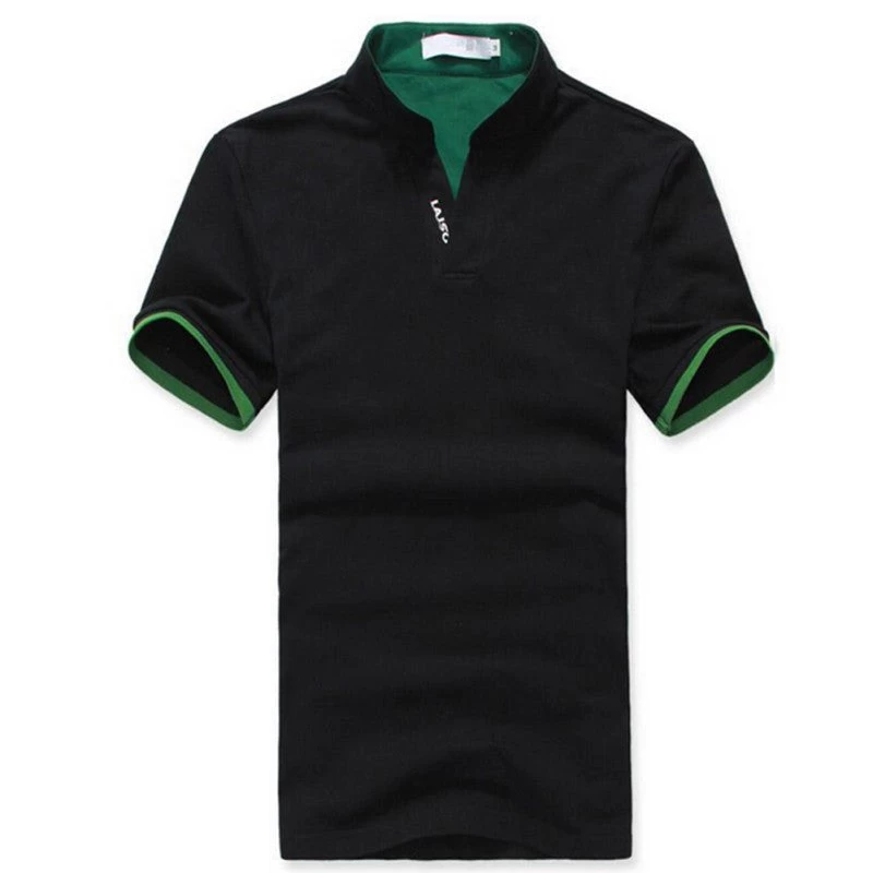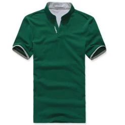 Classic fashion short sleeve Men’s T-shirts with stand collar, solid color and made out of polyester material.