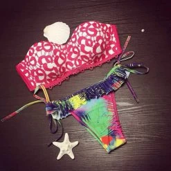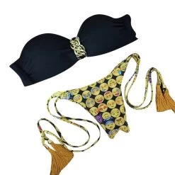 Set of bikinis made from spandex and terylene with a wire-free support type. It fits smaller than usual and it’s a Brazilian style swimsuit.