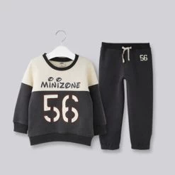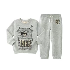 A casual long sleeve children pullover with animal pattern. It is a unisex jumpsuit made of cotton and animal pattern and consist of jacket tracksuit pant and t-shirt.
