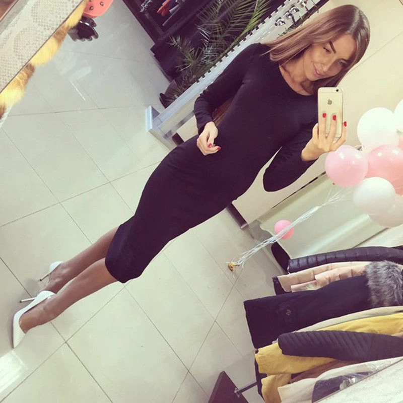 Casual knitting long sleeve knee length Midi dress for women. It is a slim bodycon bandage black wine red women gown appropriate for autumn weather.