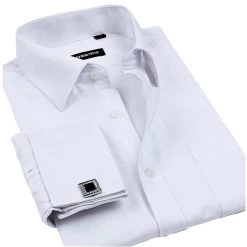 Single breasted shirt with a turn-down collar and a full-length sleeve style with cufflinks. It is made for business and wedding purposes.