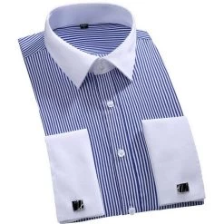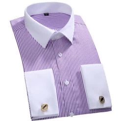 Transform your wardrobe with the Cufflinks Men Dress Shirts Fashion Formal Business Wedding French Cuff Stripe Shirts T0025. Experience the ideal combination of style, comfort, and versatility today!