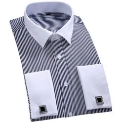 This shirt is not just for formal events; it is designed to impress anywhere you go. The Cufflinks Men Dress Shirts Fashion Formal Business Wedding French Cuff Stripe Shirts T0025 is versatile enough for both professional and celebratory occasions, ensuring you always look your best.