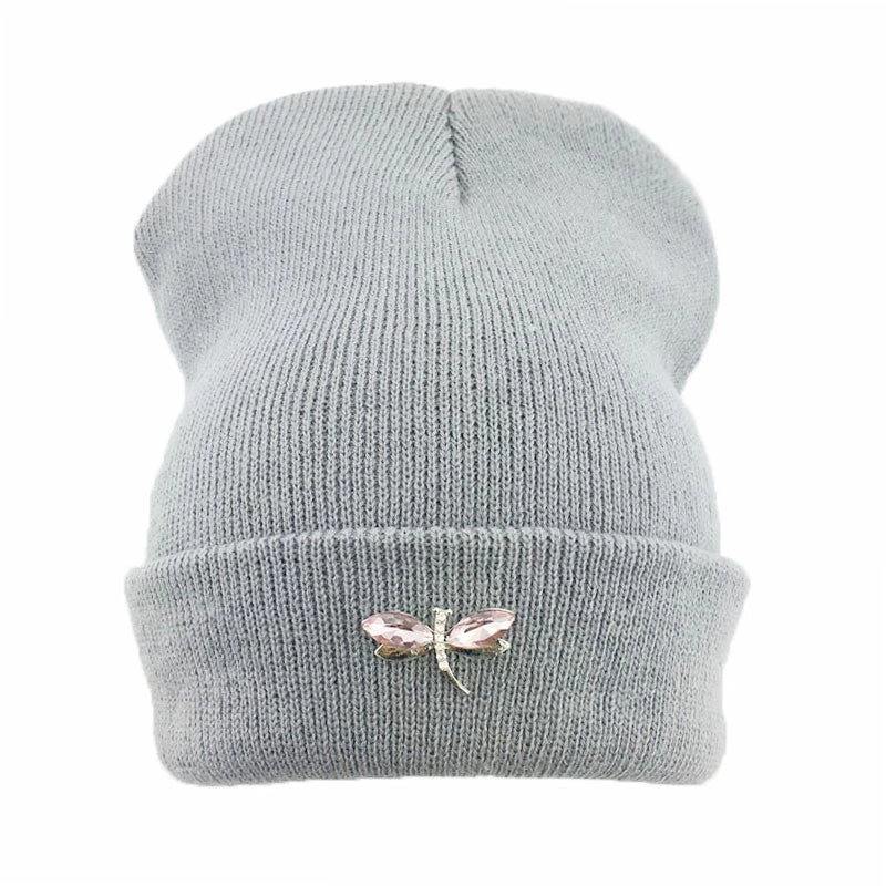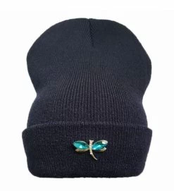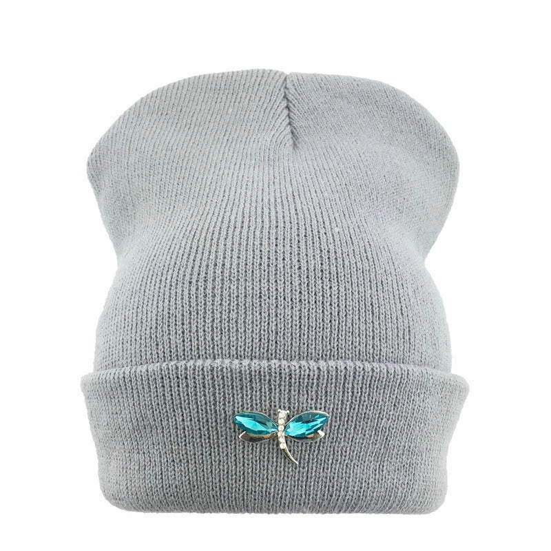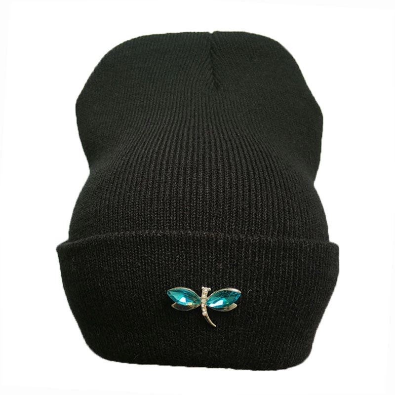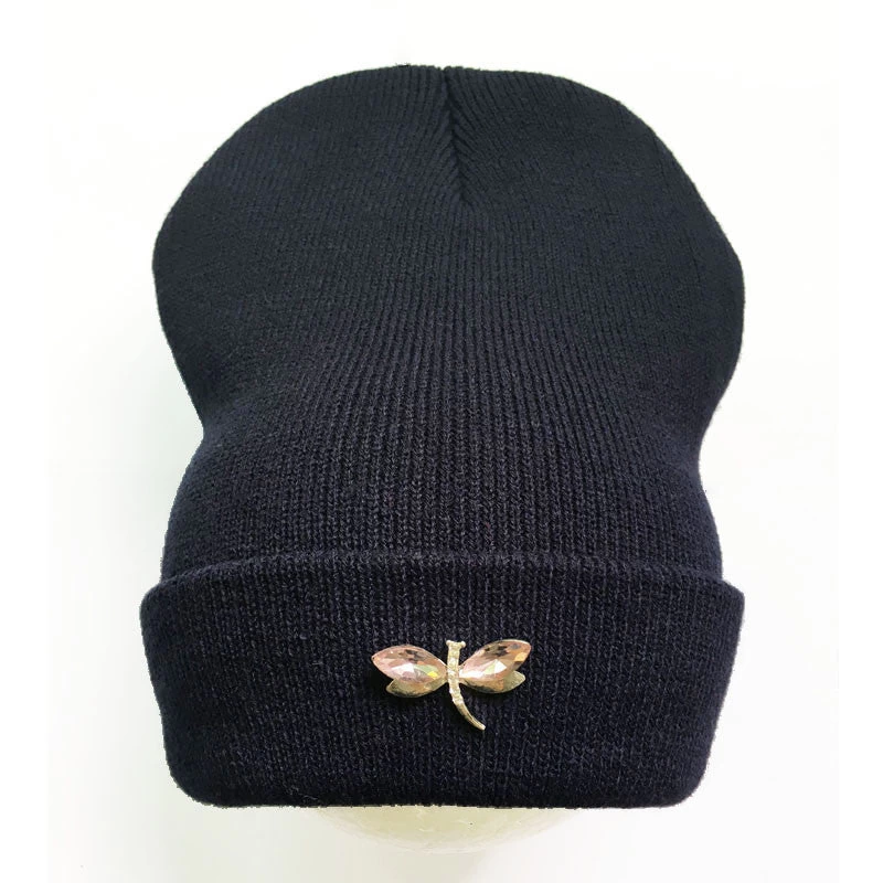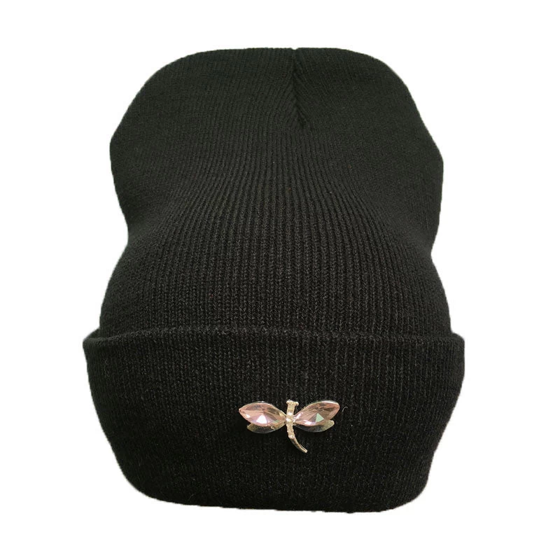 A hip hop style dragonfly crystal accessory beanie cap/head warmer for women. A cap to provide warmth and style during winter season.