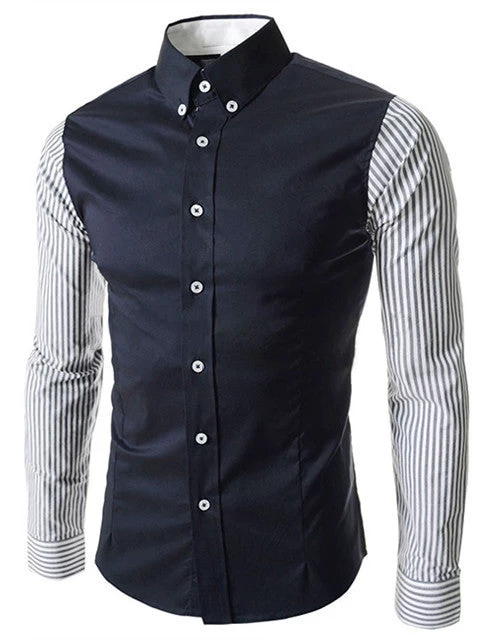 This shirt showcases a unique striped pattern with a classic turn-down collar and a single-breasted closure. The patchwork accent adds a fashionable twist, ensuring you stand out in any casual or formal setting. Whether you’re dressing up for an event or keeping it laid-back, this shirt adapts effortlessly to your style needs.