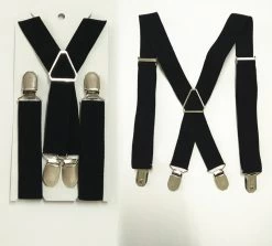 Fashionable 4 clips men X-back suspenders with 4 sizes and solid pattern for both boys and girls, men and women. It is a 65cm long black suspender.