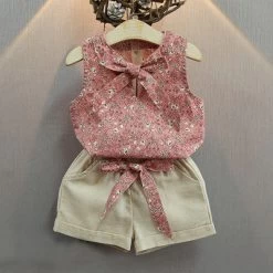 This set features a sleeveless T-shirt with a vibrant floral pattern that adds a touch of fun and cheerfulness to any summer wardrobe. The pullover closure makes dressing easy, while the O-neck collar design adds a fashionable flair. Paired with comfortable pants, this outfit is perfect for various occasions, from casual playdates to family outings.
