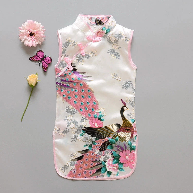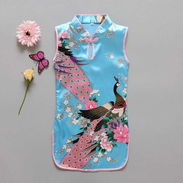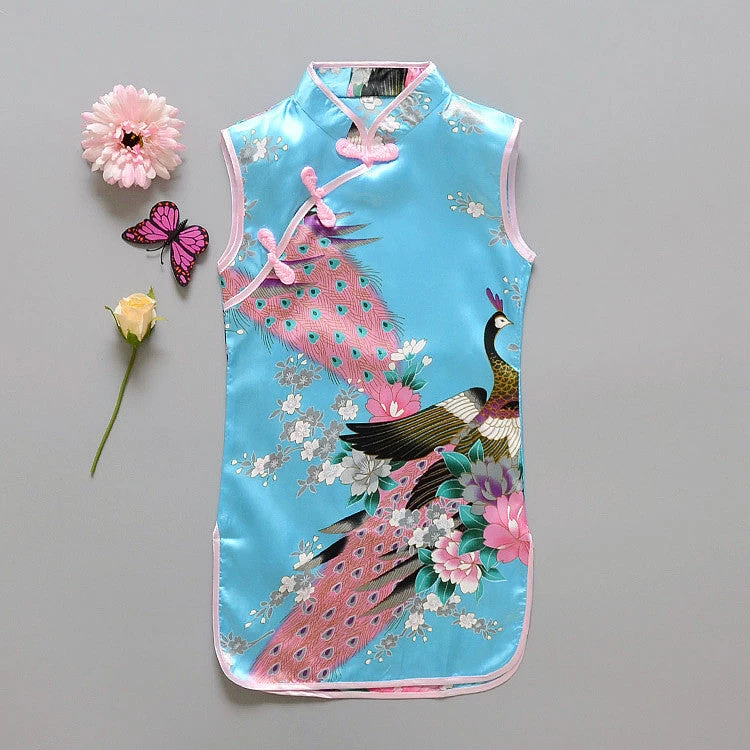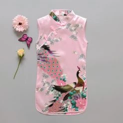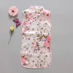 Elevate your child’s wardrobe with the Fashion Chinese Style Flower Birds Cotton Children’s Cloth Kids Qipao Dress Sleeveless Summer Girl’s Dress today, and watch her shine!