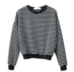 O-neck, black and white striped pattern and long sleeved cotton and polyester sweatshirt for women for casual use.