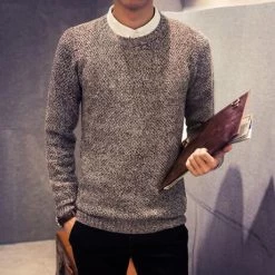 Designed with your comfort in mind, the fashion men sweater autumn winter solid color casual Knitting round neck pullovers pull homme J1538 offers a snug fit without compromising on breathability. Ideal for both casual outings and more formal occasions, this sweater will keep you cozy without sacrificing style.