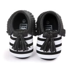 Our moccasins feature a solid pattern and trendy fringe detailing that will make your baby girl look chic and stylish. The slip-on closure allows for easy wear, making them ideal for busy parents and wiggly toddlers. These shoes are designed to fit true to size, ensuring a comfortable fit for your little one.