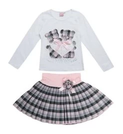 Introducing our Fashion winter Boutique Outfits Sets For 2 Pcs Kids Girl Long Sleeve Cotton Shirts Tops + Plaid Tutu Skirts With Bow Sets, the perfect combination of style and comfort for your little fashionista. This adorable outfit set features a long sleeve cotton shirt paired with a stylish plaid tutu skirt adorned with a charming bow, ensuring your child stands out in every winter gathering. Made from high-quality cotton and spandex, this outfit is designed for flexibility and ease of movement, making it ideal for playtime or special occasions.