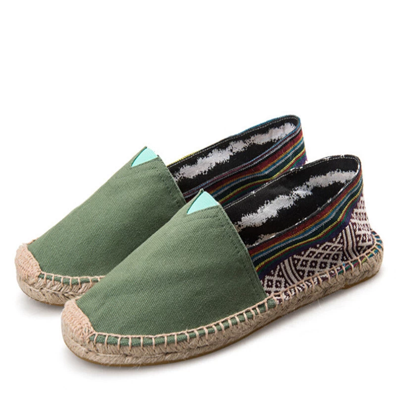 Plain pattern, round toe, slip on, patchwork, nubuck leather, rubber and cow muscle outsole canvas for men and women during summer.