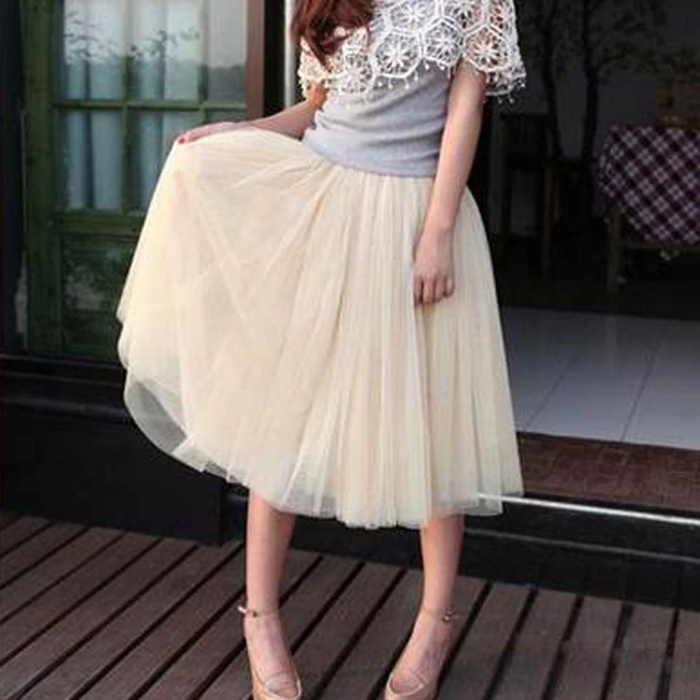 A sexy mid calf, solid pattern, bud silhouette, princess lace fairy style, multilayer Tulle skirt with bouffant design for women.